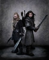 Bei den beiden Jungzwergen ist der Bart noch ziemlich schmächtig, Fili (Dean O'Gorman) links und Kili (Aiden Turner) rechts sehen daher fast wie normale Menschen aus.